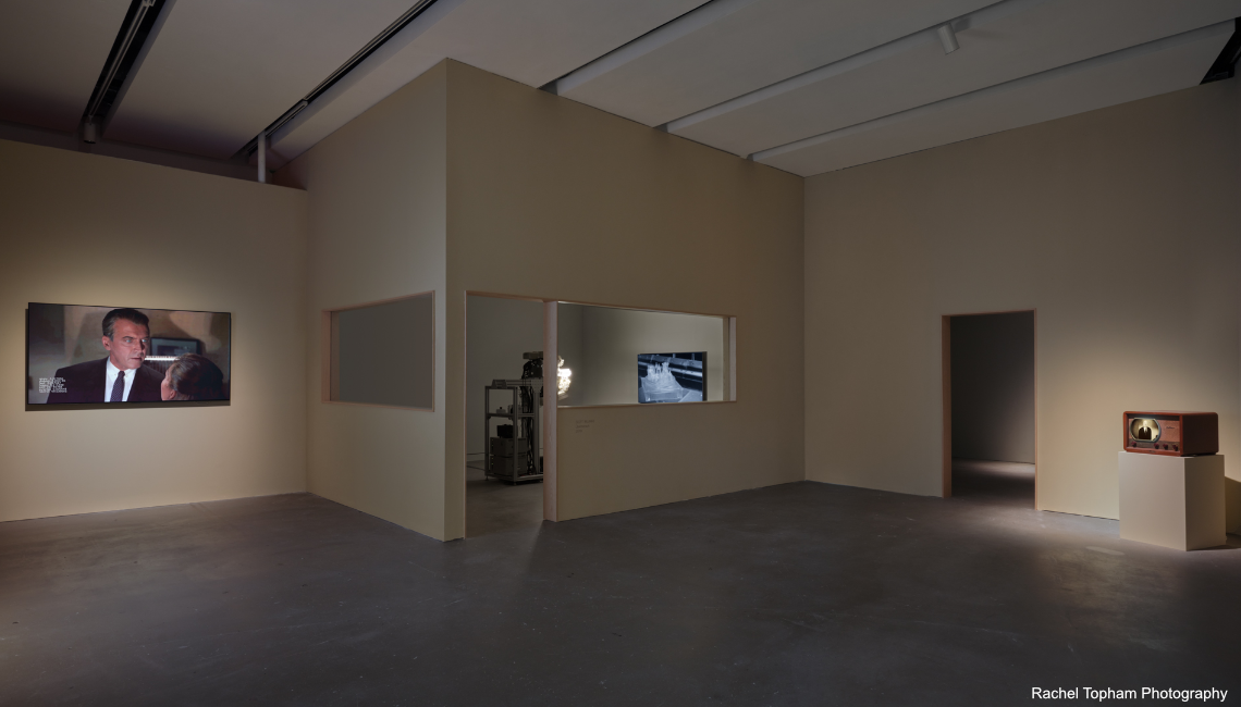 De Mortuis (2011) is a video, presented on an historic television set. Pulling fragments of footage from the television program 'Alfred Hitchcock Presents’, in which Hitchcock addressed viewers before and after each episode, the artist re-edits the clips so that Hitchcock now delivers a speech on the metaphysics of the electronic image and on the television as a metaphor for human mortality.